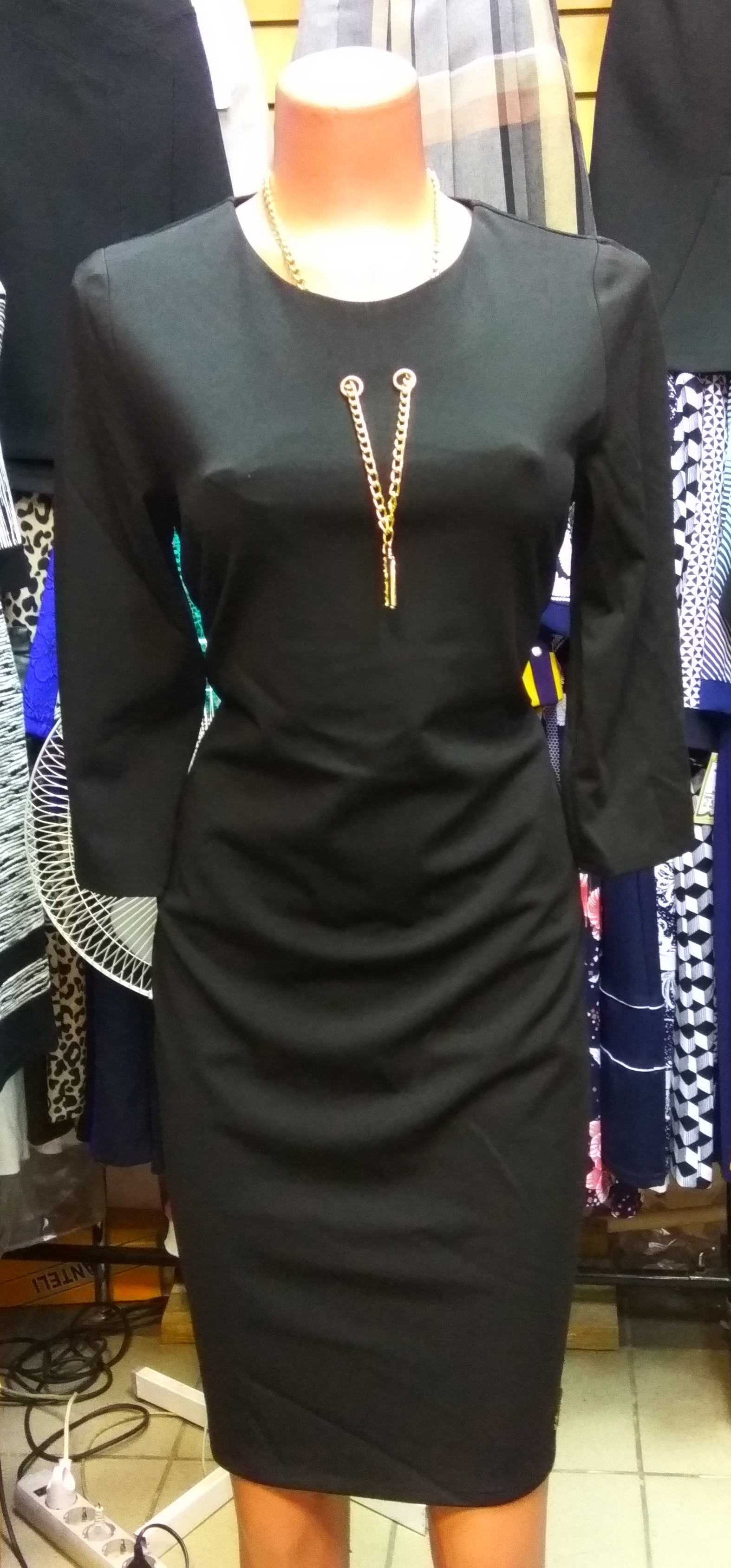 Приталенное, по горловине отделка цепочка с подвеской "Лезвие".
