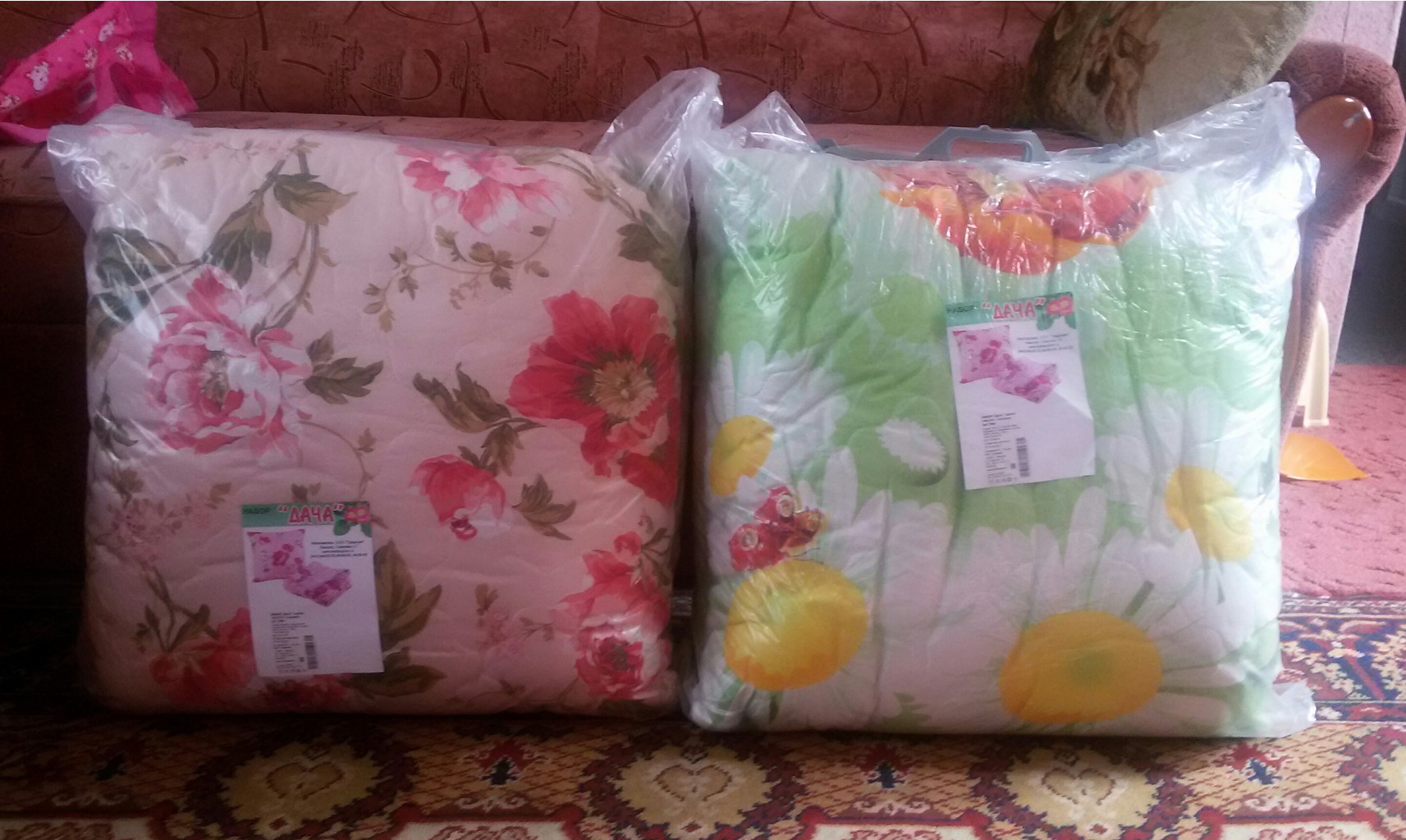 1. НАБОР "Дача" одеяло 140х210 + подушка "Комфорт" 60х60 чехол подушки/одеяла полиэстер, наполнитель подушки/одеяла Полиэфирное волокно 100%, плотность 200 гр. 590 РУБЛЕЙ!
