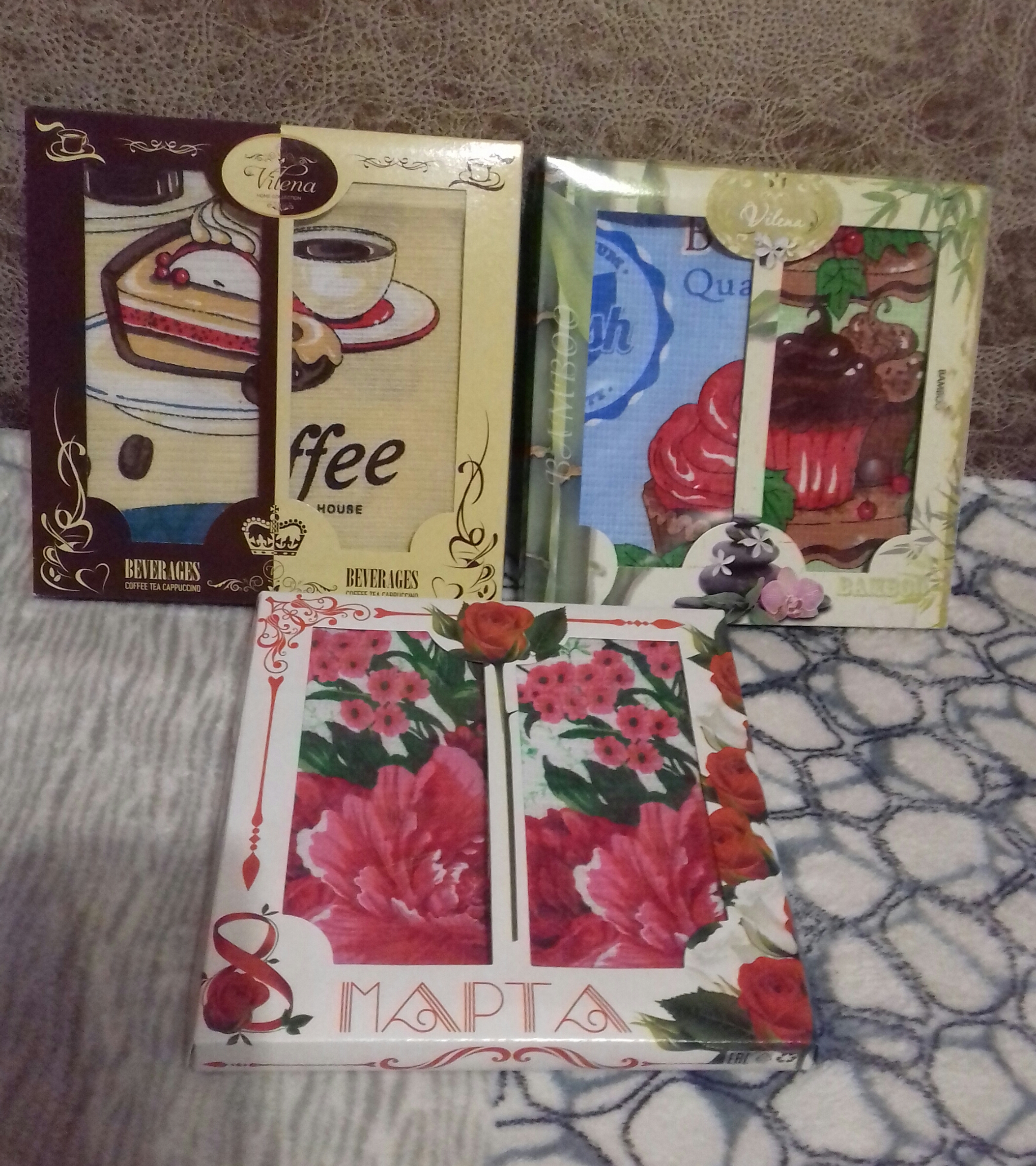 Коробка+ 2 вафельных полотенца 45*60 купон (как на фото).