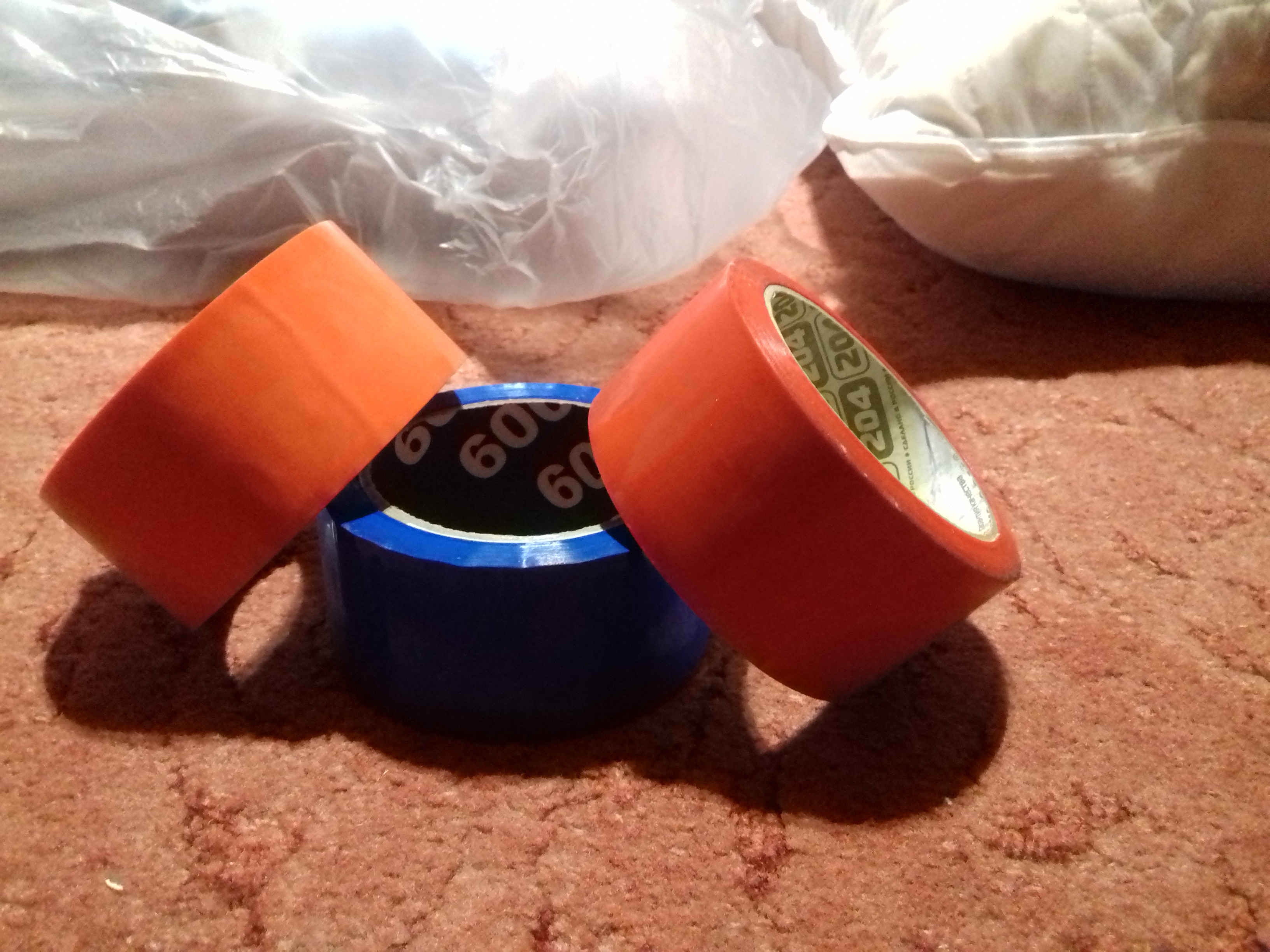 Цвета: красный, синий, оранжевый.