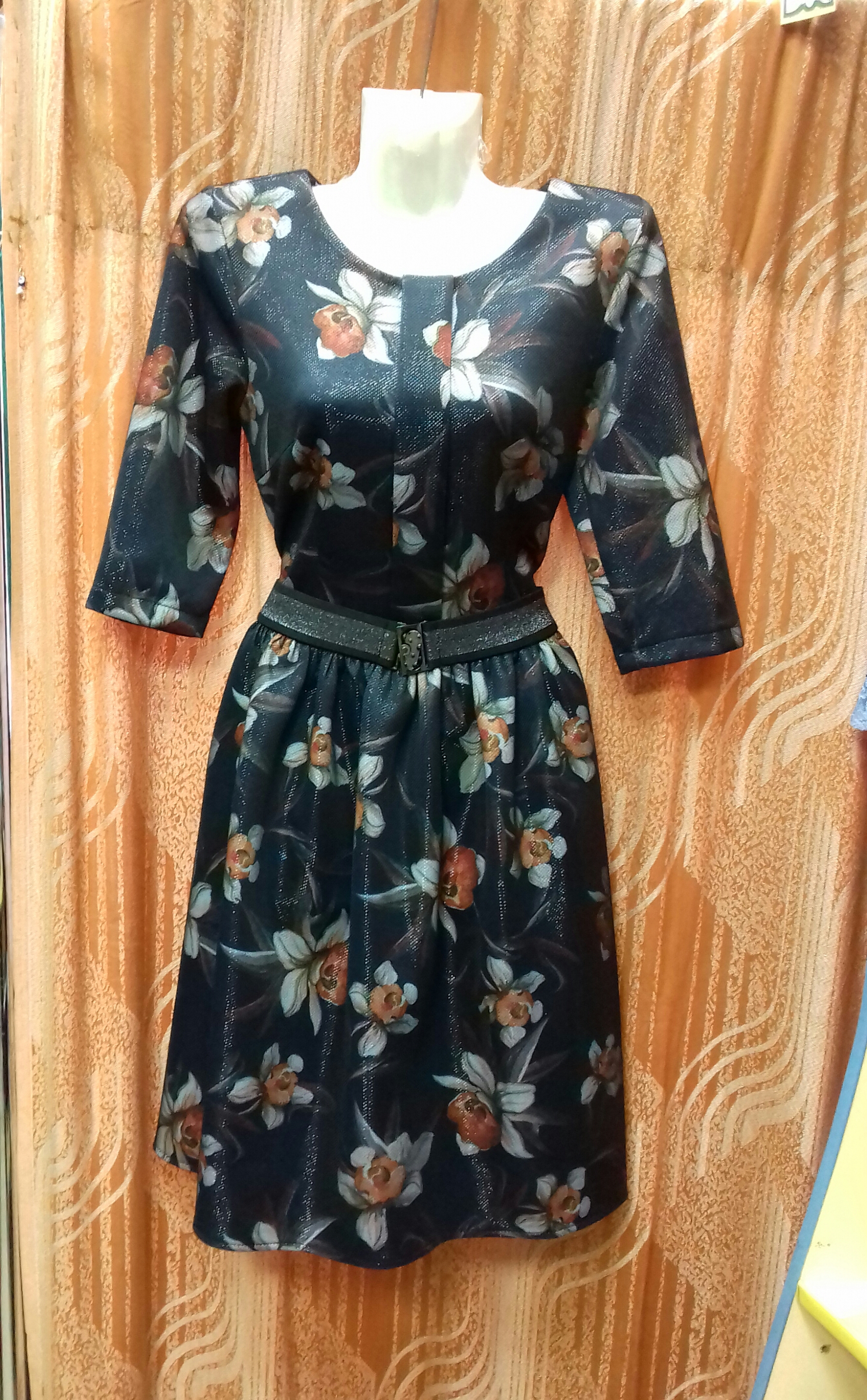 Ткань: трикотаж с мерцающим напылением, мягкая сборка по талии, сбоку молния.