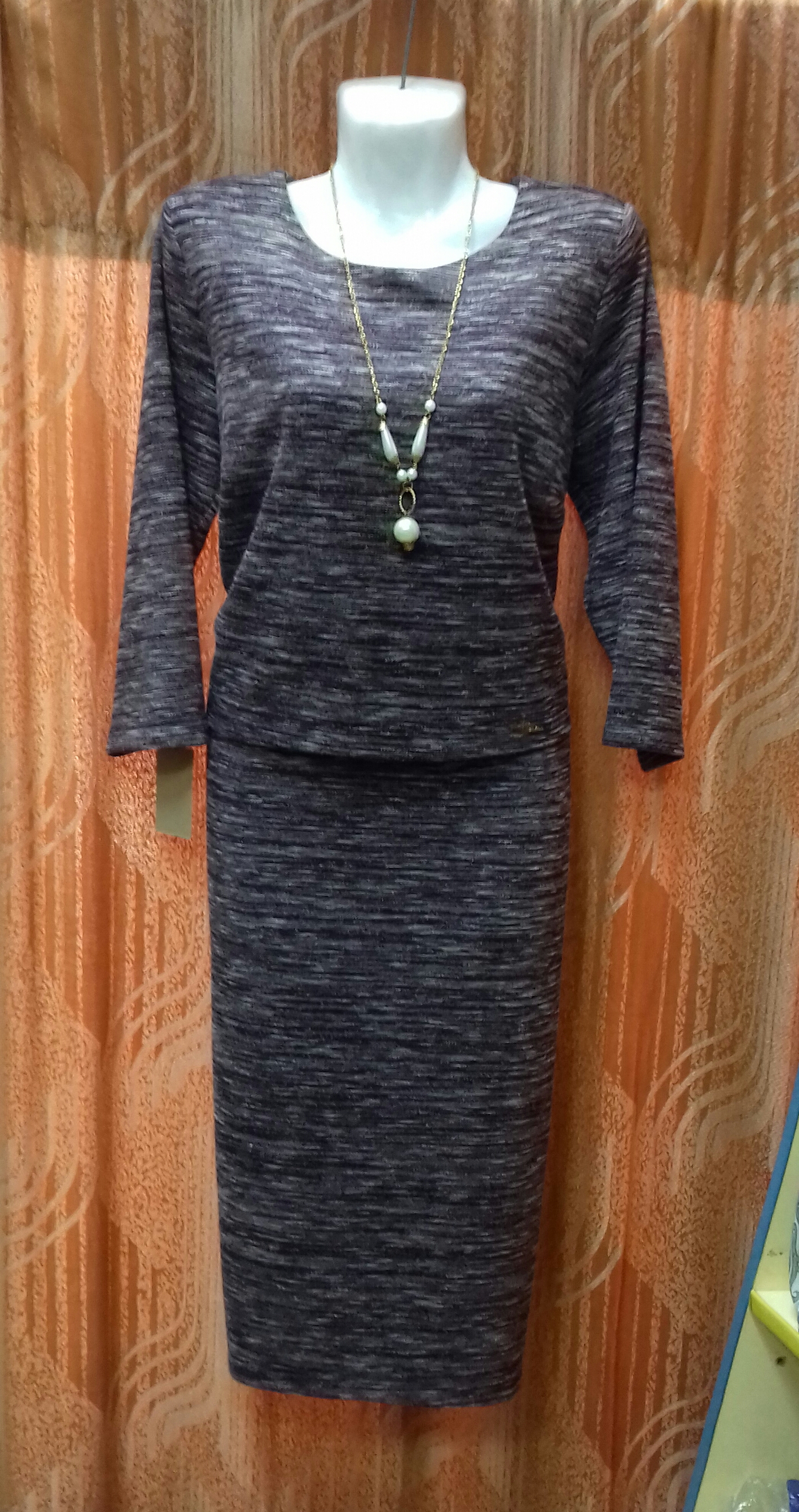 Трикотаж, цвет сиреневая рябь, с боку карман, слегка приталенное. Длинна за колено.