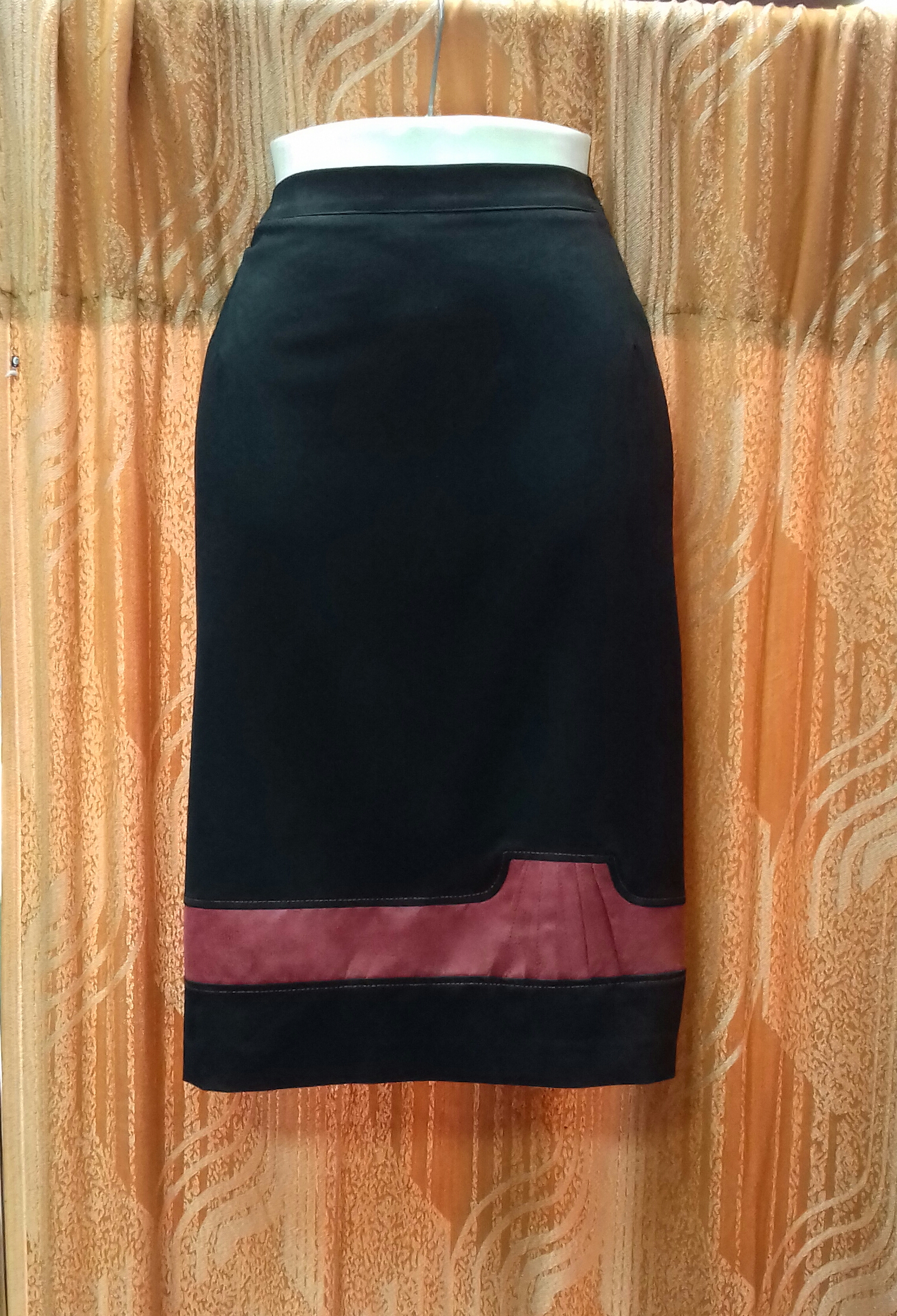Плательная ткань, вставка бордо эко-кожа (драпировка), на поясе. Длинна 65 см.