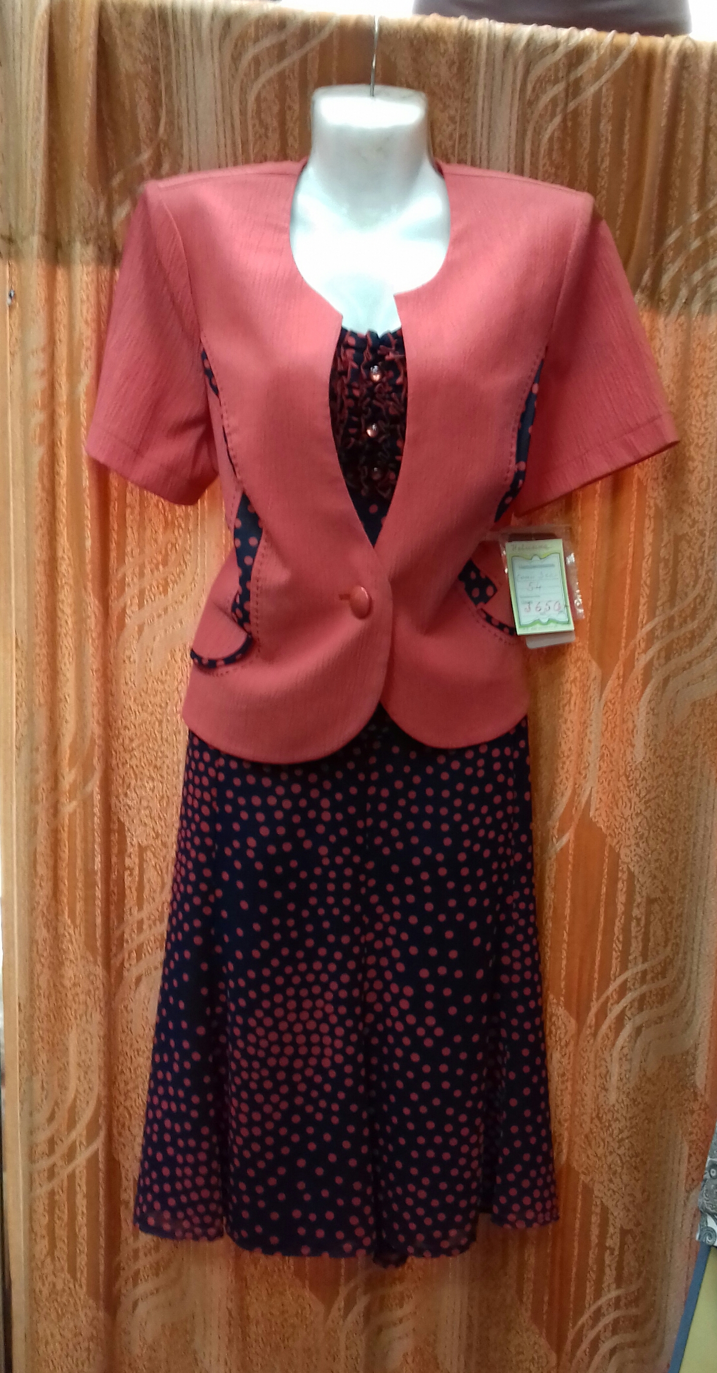 Ткань: шифон (юбка и блузка), пиджак жакард. Юбка гаде, блузка сбоку на молнии.